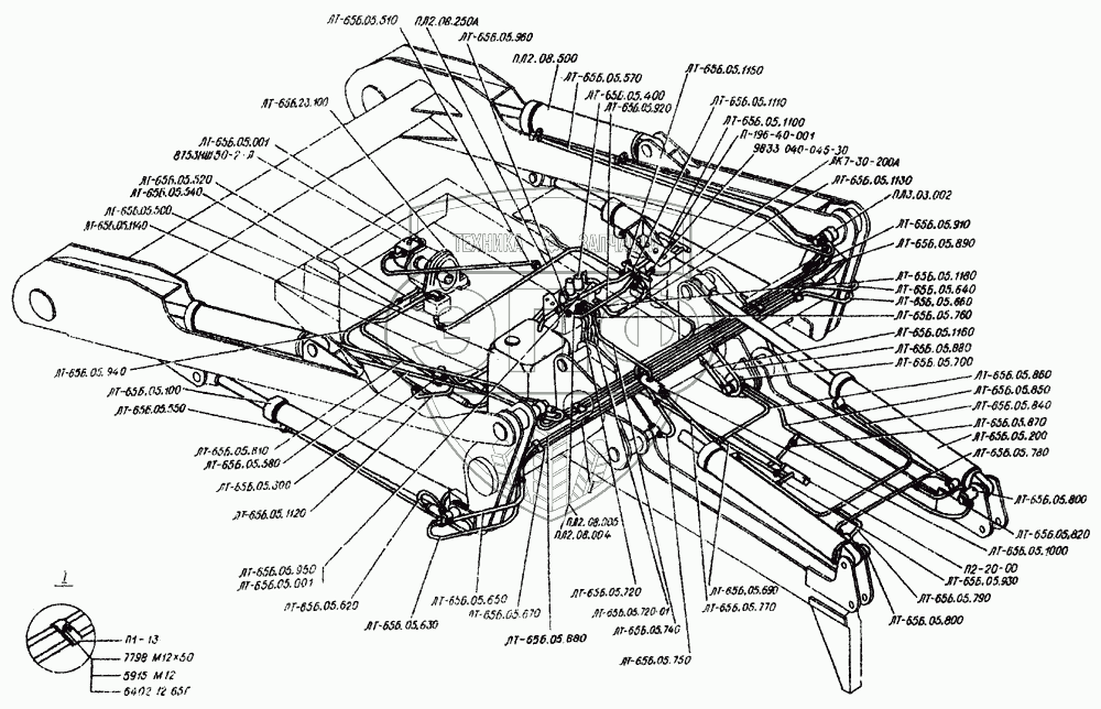 Каталог запасных частей к технике: Алтайлесмаш ЛТ-65Б. Привод стрелы гидравлический