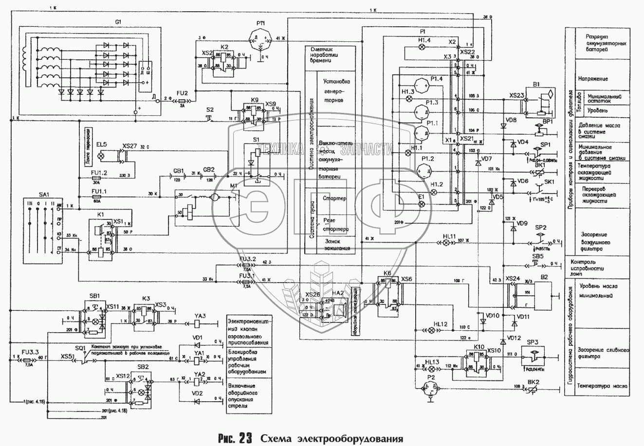 Каталог запасных частей к технике: Амкодор-208А. Схема электрооборудования