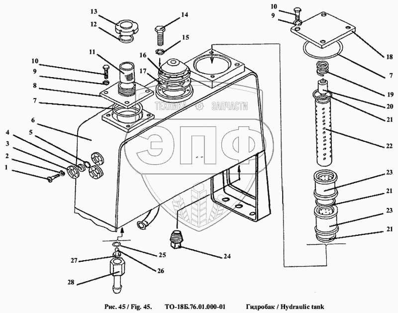 Каталог запасных частей к технике: Амкодор-342А (ТО-28А). Гидробак