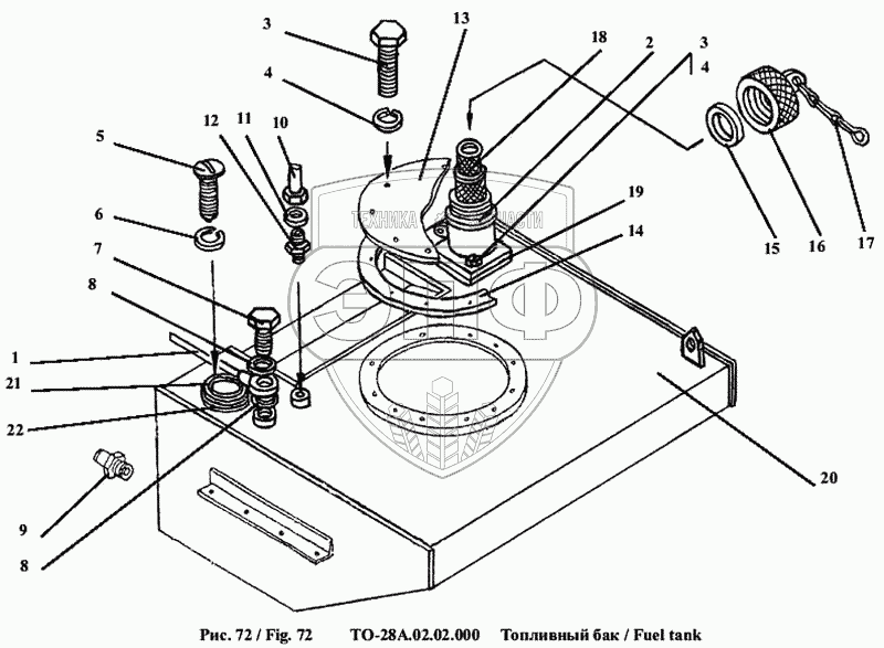Каталог запасных частей к технике: Амкодор-342А (ТО-28А). Топливный бак