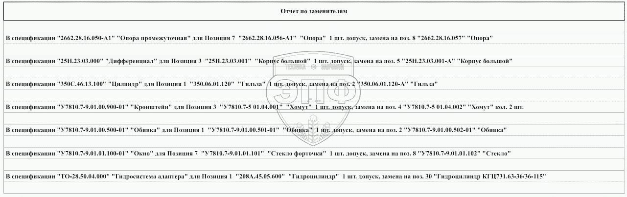 Отчет по заменителям