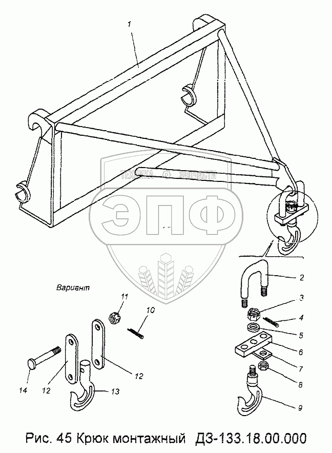 Каталог запасных частей к технике: Амкодор-91 (ДЗ-133ЭЦ). Крюк монтажный