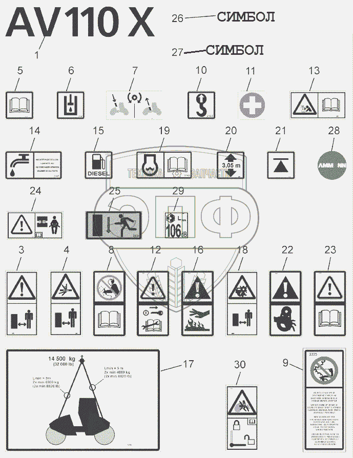 Каталог запасных частей к технике: Ammann AV 110 X. ЗНАК
