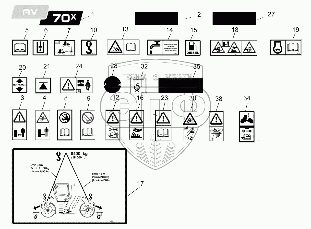 Каталог запасных частей к технике: Ammann AV 70X. Signs