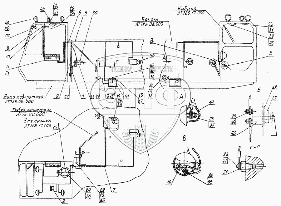 Каталог запасных частей к технике: АОМЗ ЛТ-72 Б. Монтаж электрооборудования