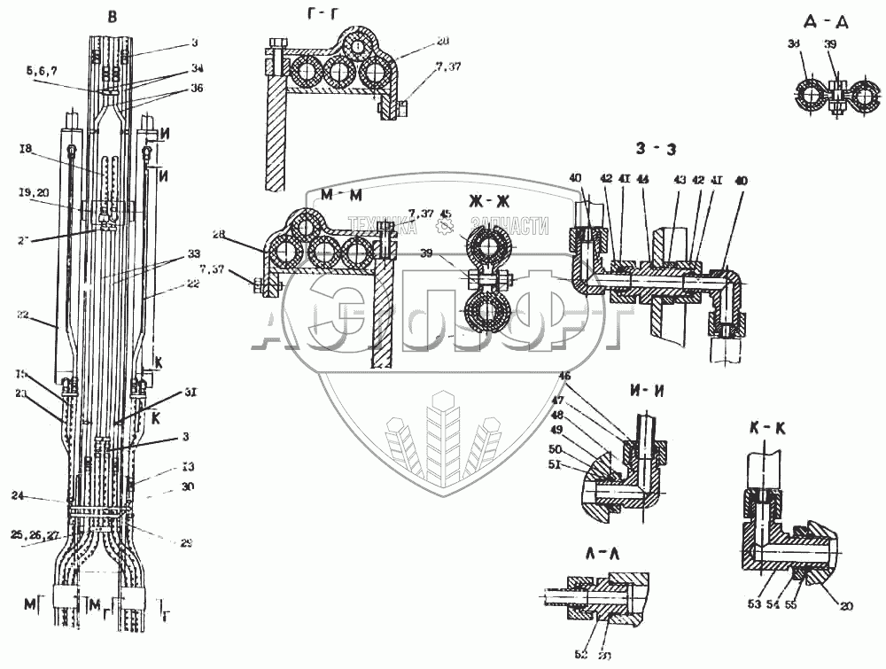 Каталог запасных частей к технике: Атек-2324-1. Гидроразводка обратной лопаты