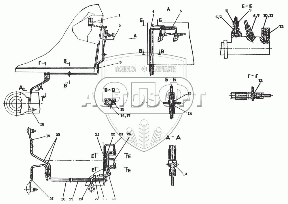 Каталог запасных частей к технике: Атек-2324-1. Гидроразводка тормозов
