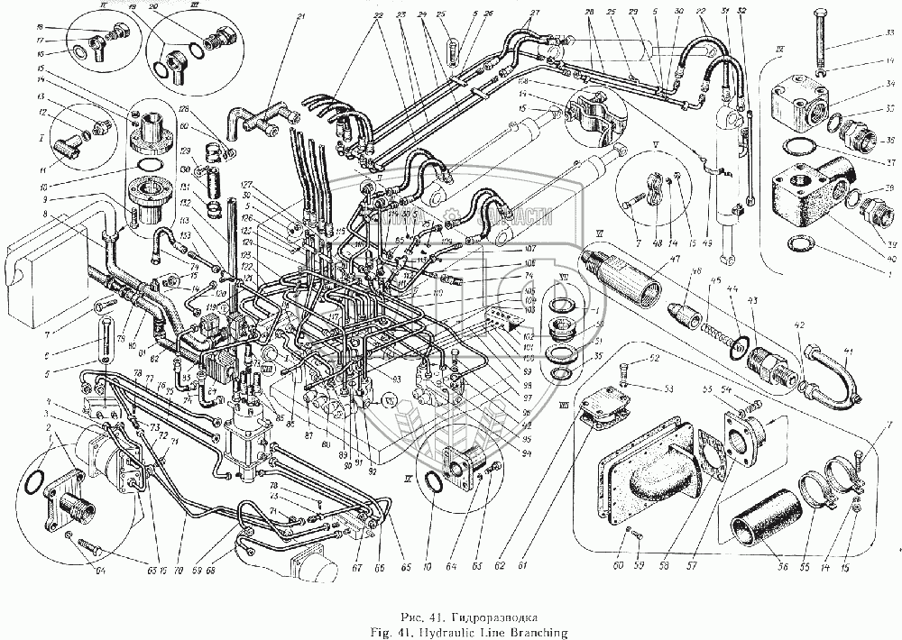 Каталог запасных частей к технике: Атек Э-5015А. Гидроразводка
