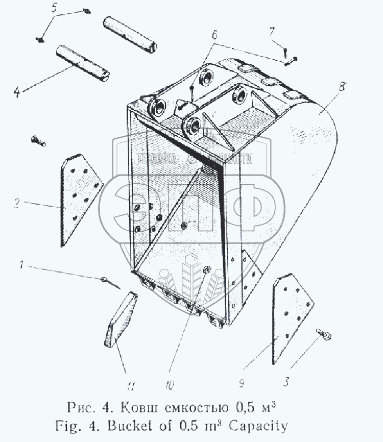 Каталог запасных частей к технике: Атек Э-5015А. Ковш емкостью 0,5 м3