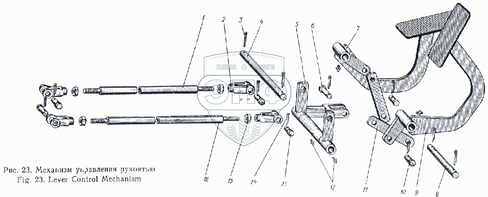 Каталог запасных частей к технике: Атек Э-5015А. Механизм управления рукоятью