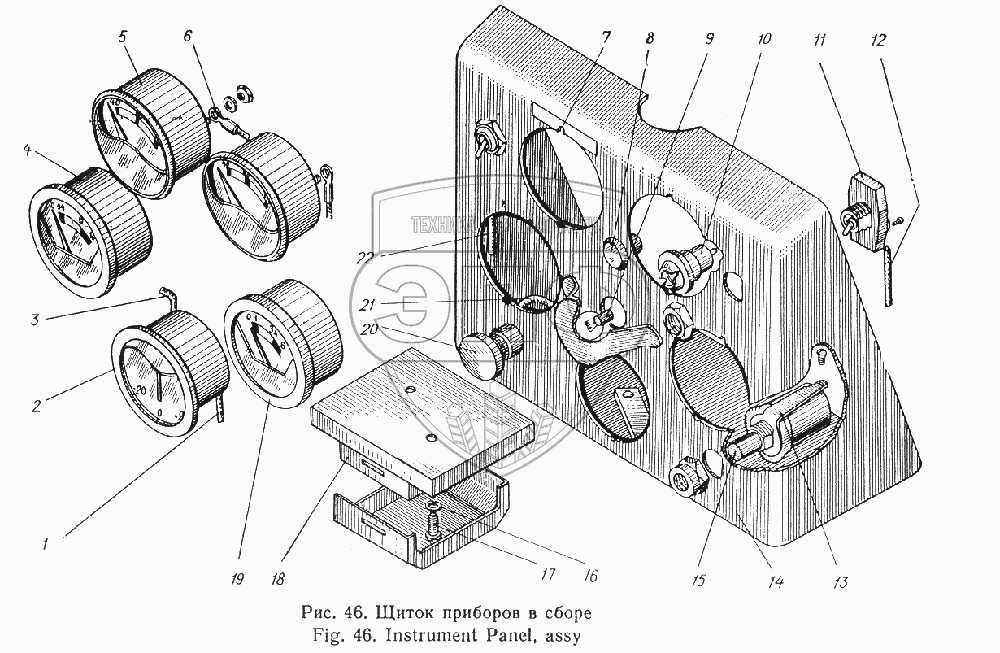 Каталог запасных частей к технике: Атек Э-5015А. Щиток приборов в сборе
