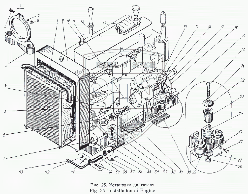 Каталог запасных частей к технике: Атек Э-5015А. Установка двигателя