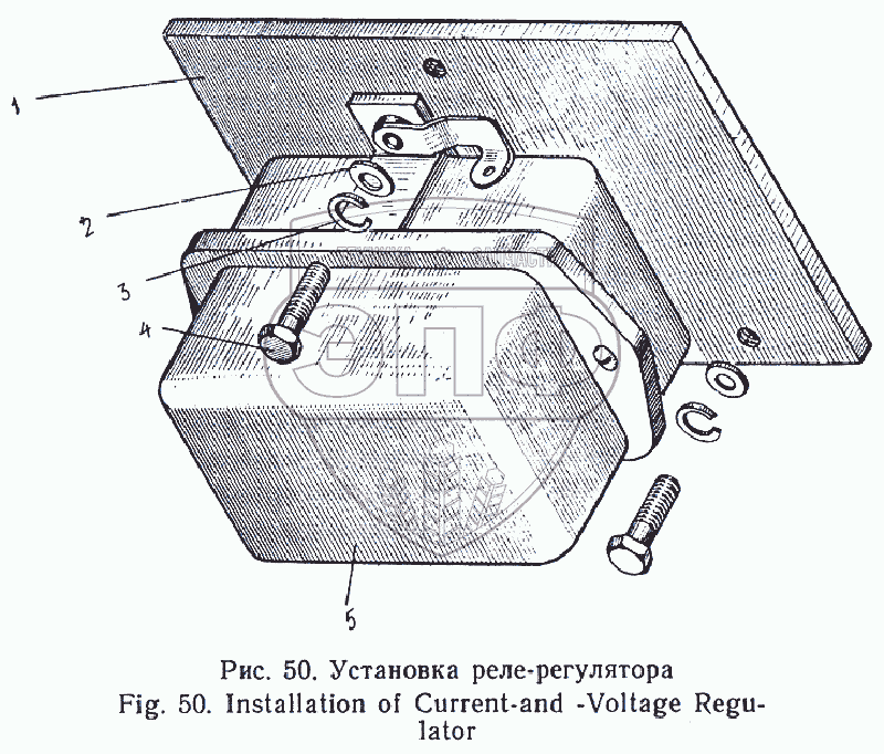 Каталог запасных частей к технике: Атек Э-5015А. Установка реле-регулятора