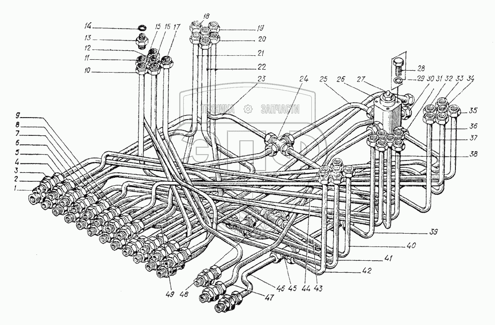 Каталог запасных частей к технике: Атек ЭО-4321Б. 49.0809.000 Гидроразводка