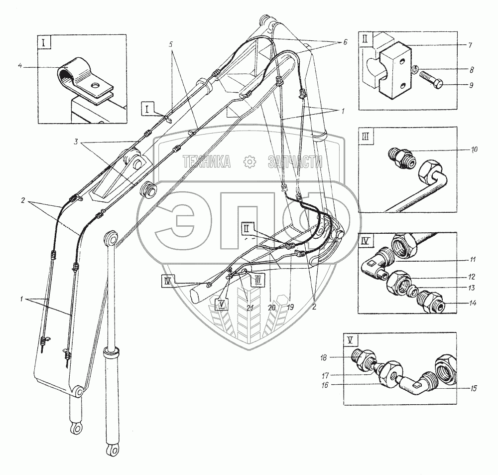 Каталог запасных частей к технике: Атек ЭО-4321Б. 49.7003.000 Гидроразводка гидромолота