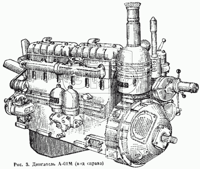 Каталог запасных частей к технике: АТЗ Т-4А. Двигатель А-01М (вид справа)