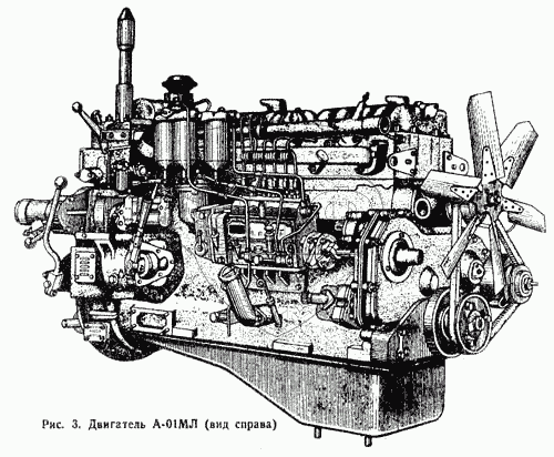 Каталог запасных частей к технике: АТЗ ТТ-4. Двигатель А-01МЛ (вид справа)