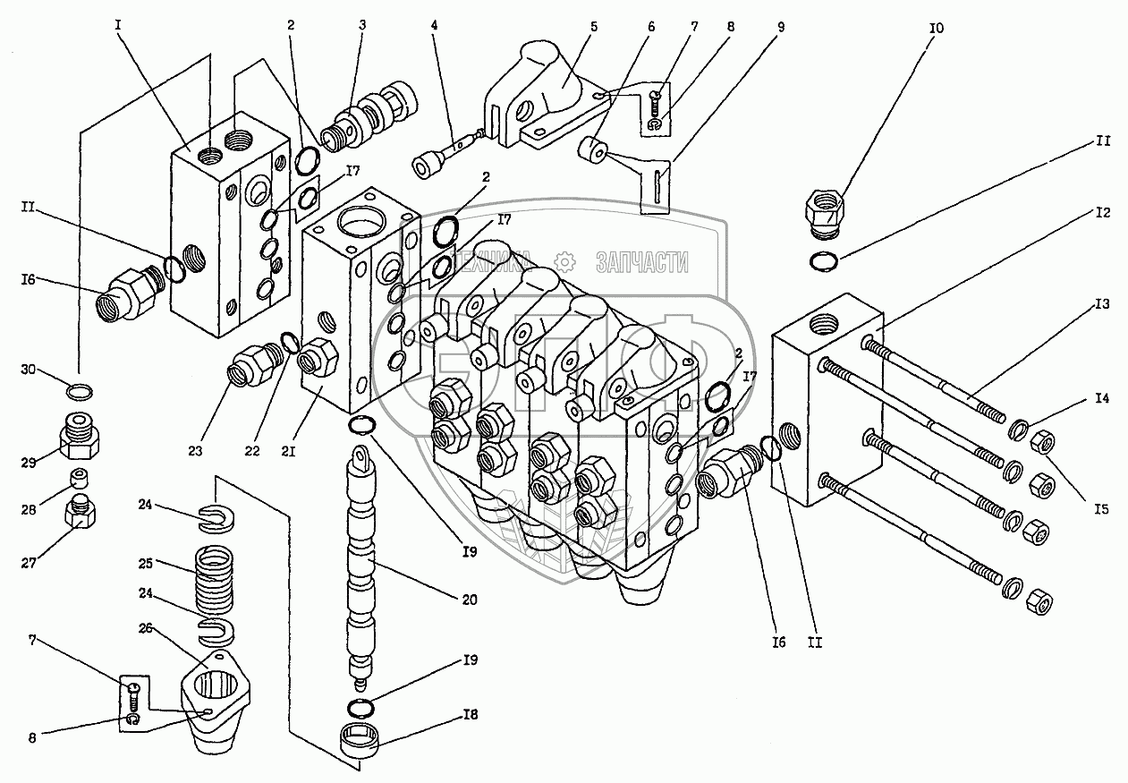 Каталог запасных частей к технике: Автокран КС-35714. Гидрораспределитель У3.19.00.000