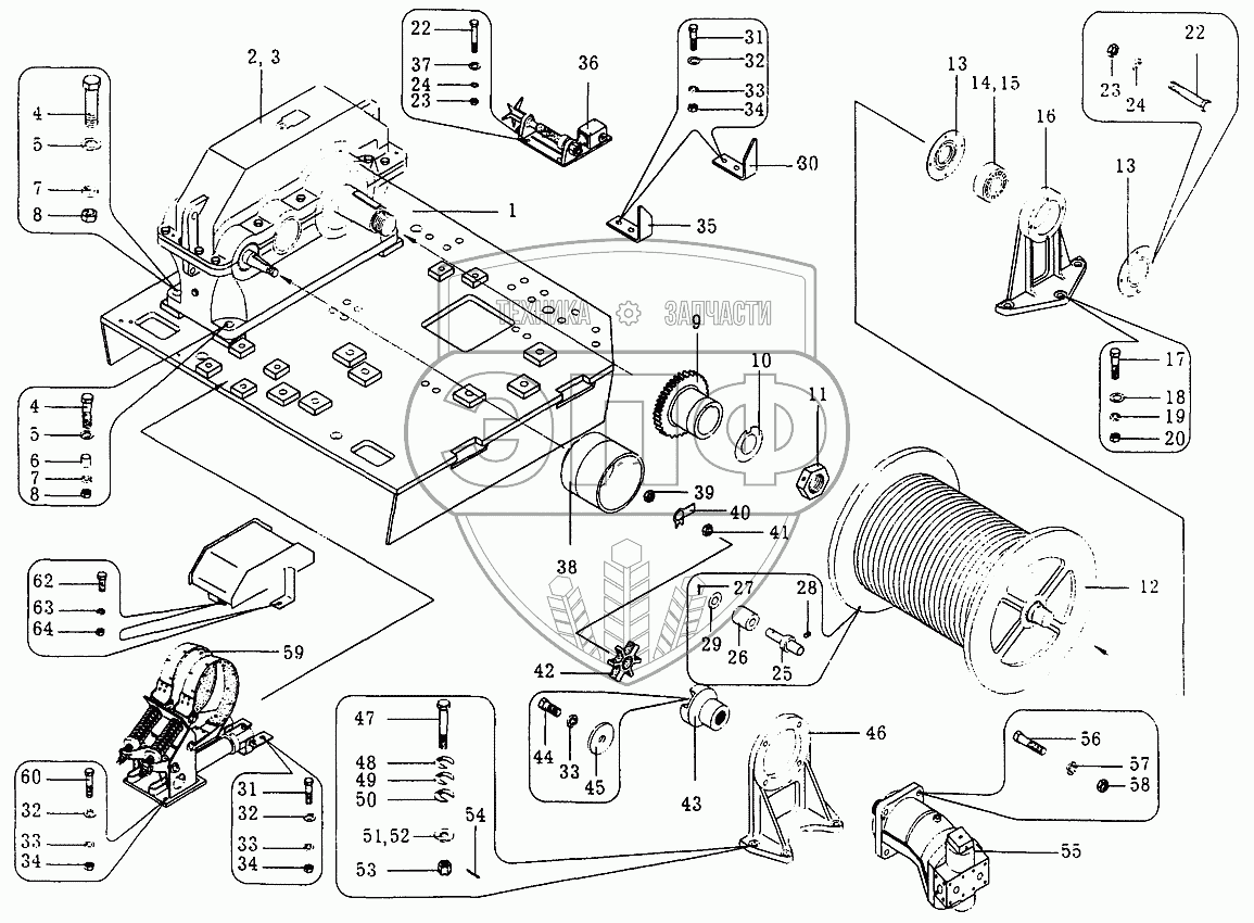 Каталог запасных частей к технике: Автокран КС-35714. Лебедка грузовая КС-35714.26.000