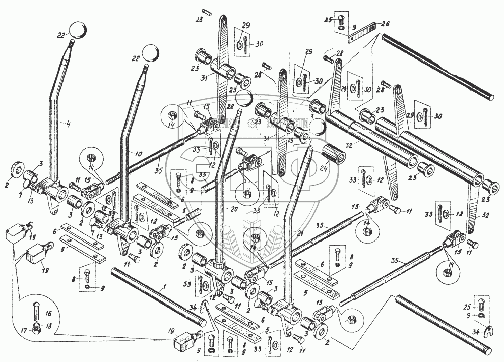 Каталог запасных частей к технике: Автокран КС-3571. Приводы управления рабочими операциями КС-3562А.71.000 СБ