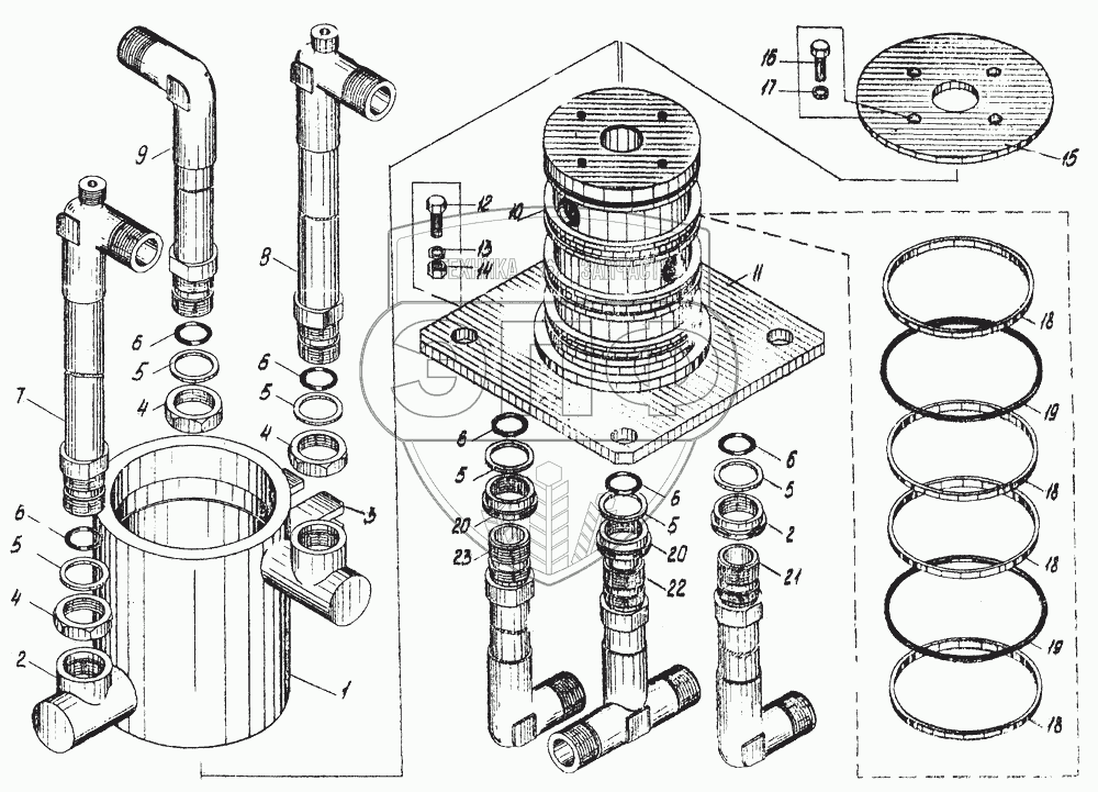 Каталог запасных частей к технике: Автокран КС-3571. Соединение вращающееся КС-3562А.60.710