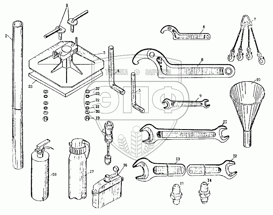 Каталог запасных частей к технике: Автокран КС-3574. Инструмент, принадлежности КС-3574.91.400