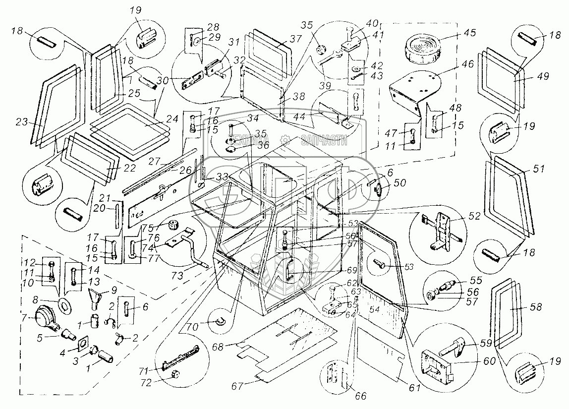 Каталог запасных частей к технике: Автокран КС-3577. Установка кабины КС-3577.52.000
