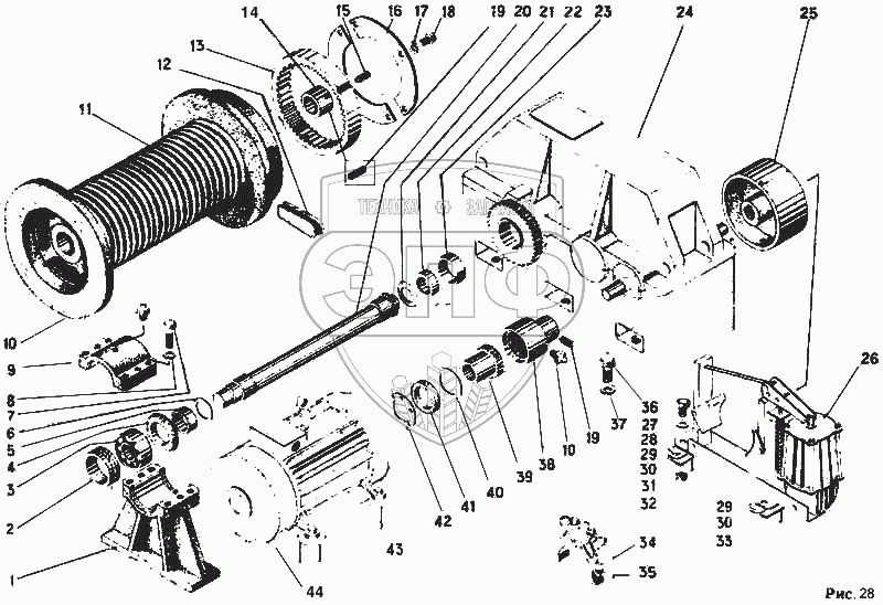 Каталог запасных частей к технике: Автокран КС-4562. Лебедка механизма главного подъема