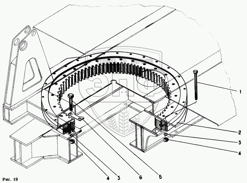 Каталог запасных частей к технике: Автокран КС-4562. Опорно-поворотное устройство