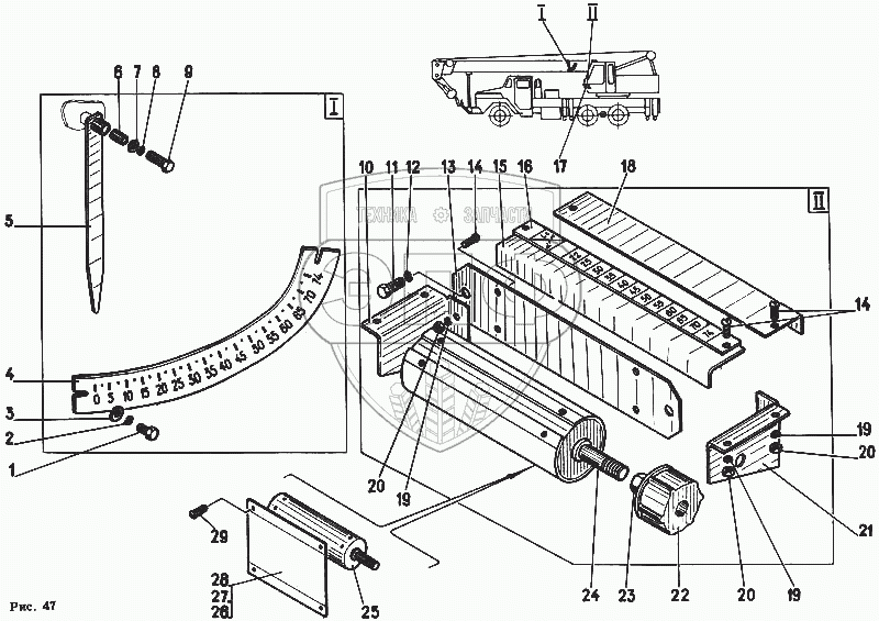 Каталог запасных частей к технике: Автокран КС-4562. Указатель грузоподъемности