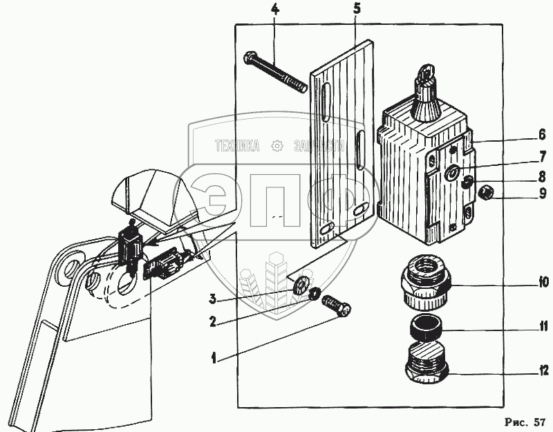 Каталог запасных частей к технике: Автокран КС-4562. Установка конечного выключателя подъема стрелы