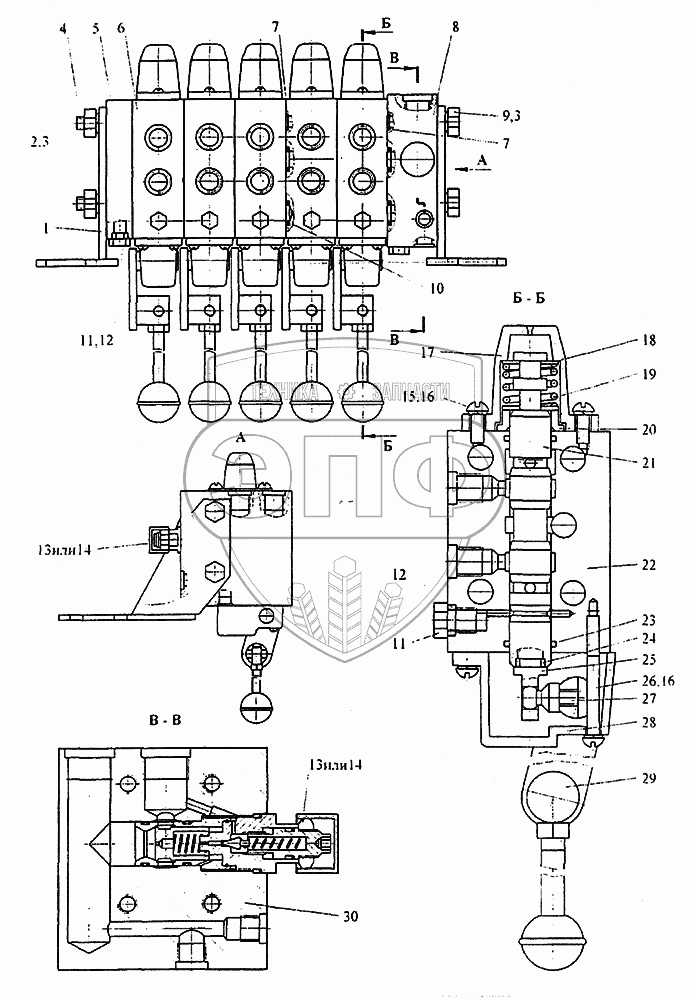 Каталог запасных частей к технике: Автокран КС-45717К-1. Гидрораспределитель