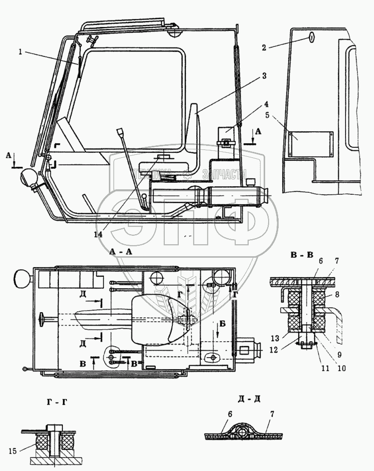 Каталог запасных частей к технике: Автокран КС-6973А. Установка кабины KC-6973A.52.000