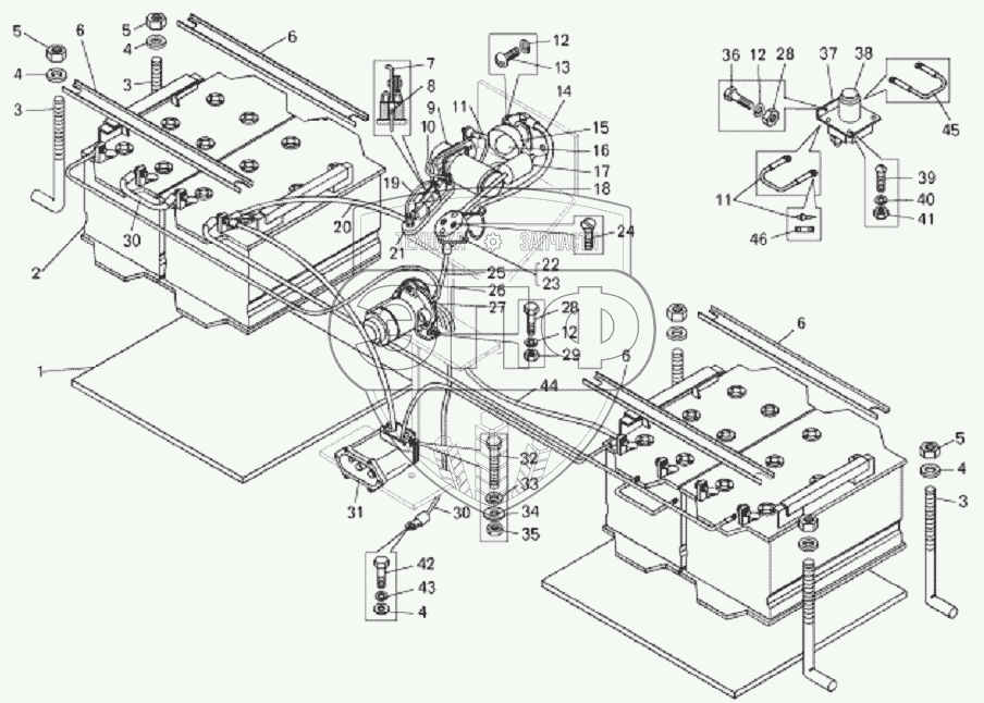 Каталог запасных частей к технике: БелАЗ-7822. Установка аккумуляторных батарей