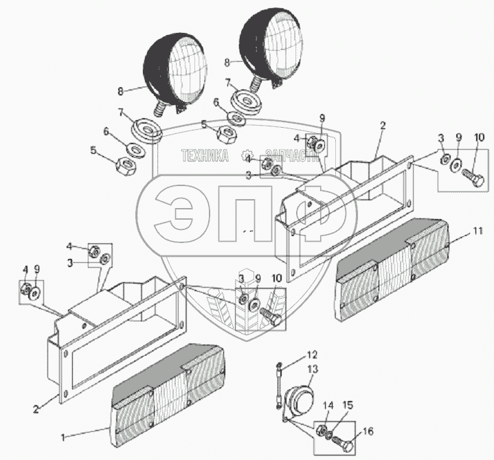 Каталог запасных частей к технике: БелАЗ-7822. Установка задних фар и фонарей