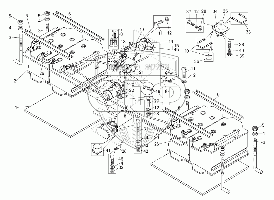 Каталог запасных частей к технике: БелАЗ-7822. Установка аккумуляторных батарей