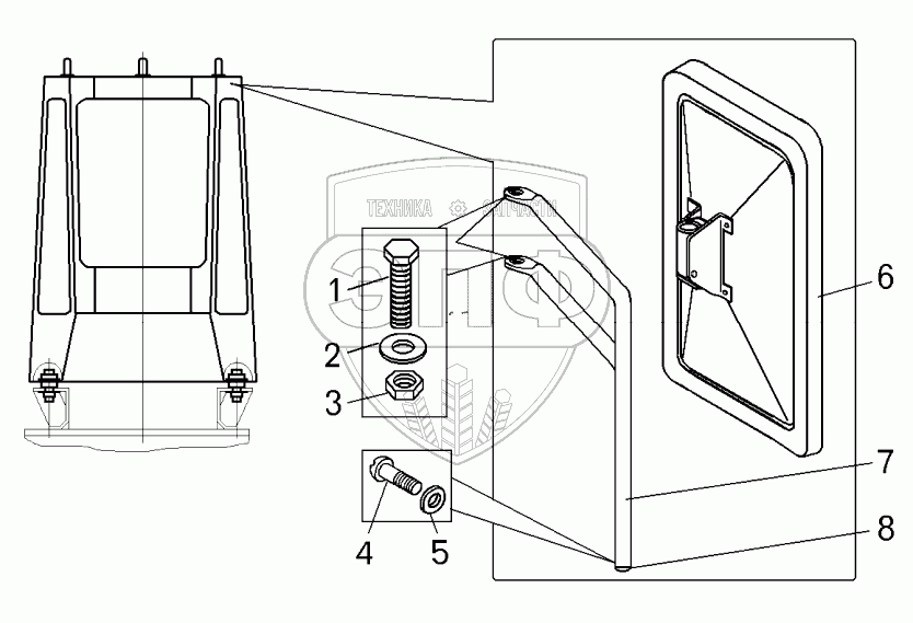 Каталог запасных частей к технике: БелАЗ-7822. Установка кронштейнов зеркал