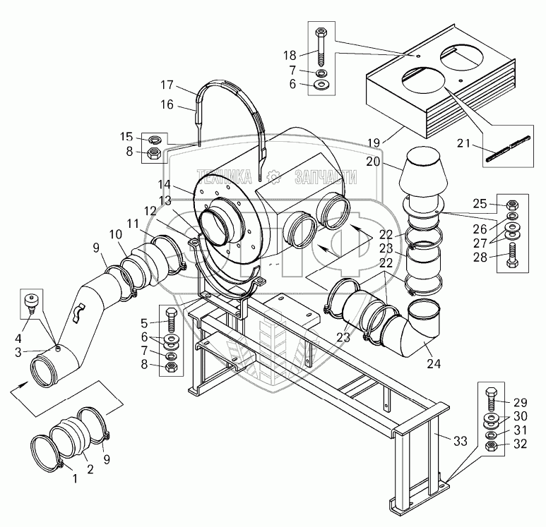 Каталог запасных частей к технике: БелАЗ-7822. Установка воздушного фильтра на погрузчике БелАЗ-78221