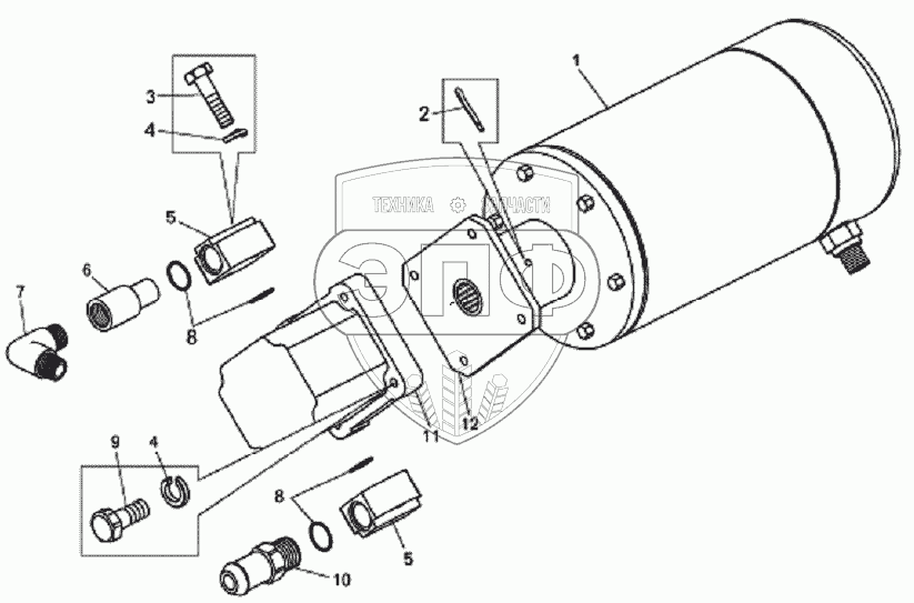 Каталог запасных частей к технике: БелАЗ-7823. Электродвигатель дублирующего привода с насосом