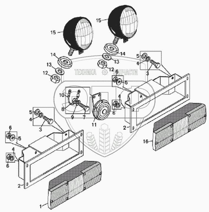 Каталог запасных частей к технике: БелАЗ-7823. Установка задних фар и фонарей