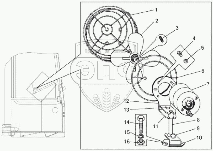 Каталог запасных частей к технике: БелАЗ-7823. Вентилятор кабины и его установка