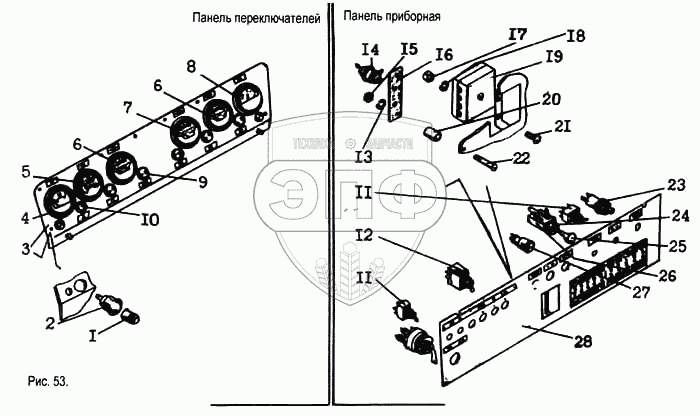 Каталог запасных частей к технике: Брянский Арсенал ДЗ-143. Панель приборная