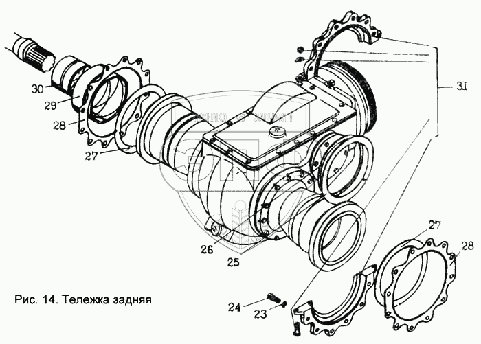Каталог запасных частей к технике: Брянский Арсенал ДЗ-143. Тележка задняя (Балка моста)