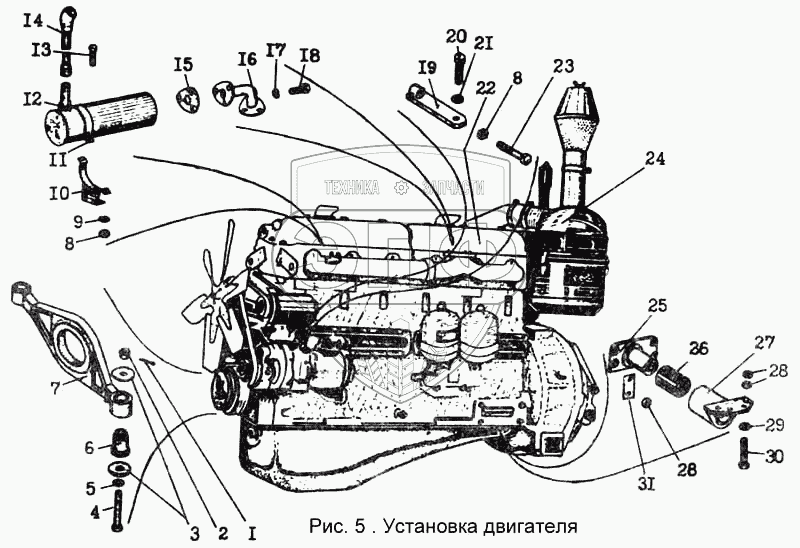 Каталог запасных частей к технике: Брянский Арсенал ДЗ-143. Установка двигателя