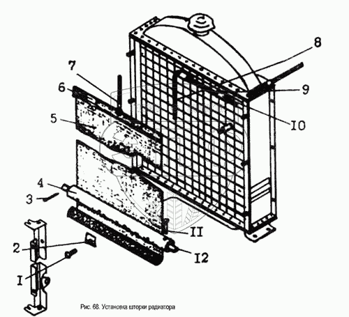 Каталог запасных частей к технике: Брянский Арсенал ДЗ-143. Установка шторки радиатора