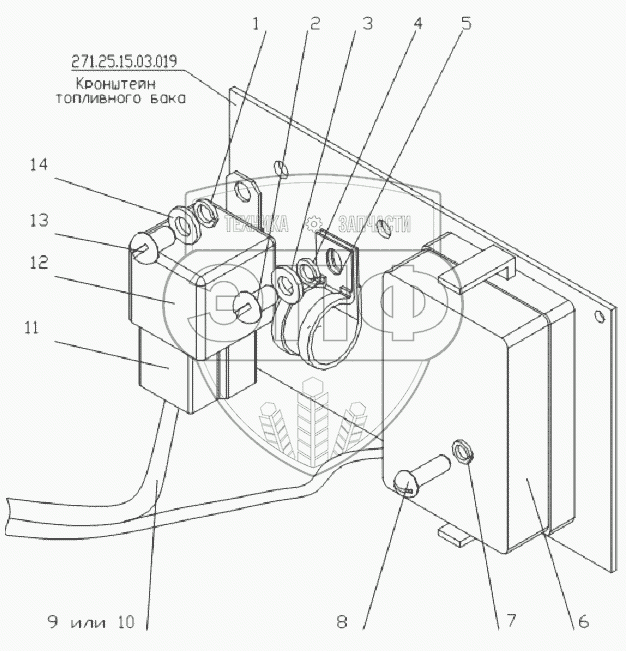 Каталог запасных частей к технике: Брянский Арсенал ГС-14.02 (250-22). Плата предохранителя