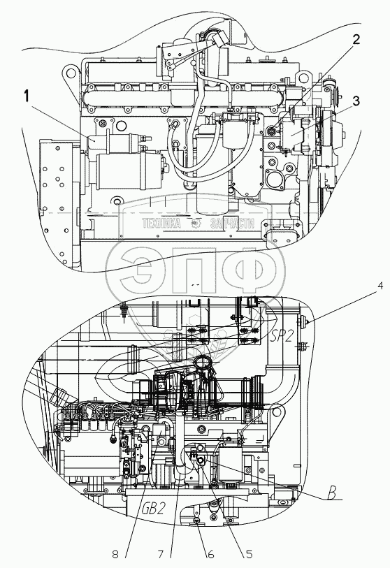 Каталог запасных частей к технике: Брянский Арсенал TG-140. Установка датчиков на двигателе