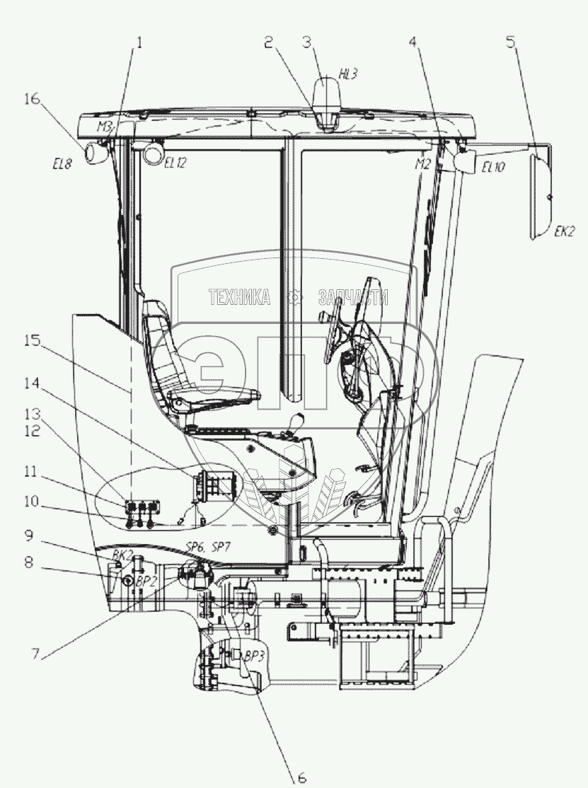 Каталог запасных частей к технике: Брянский Арсенал TG-250 (782-80). Электрооборудование кабины