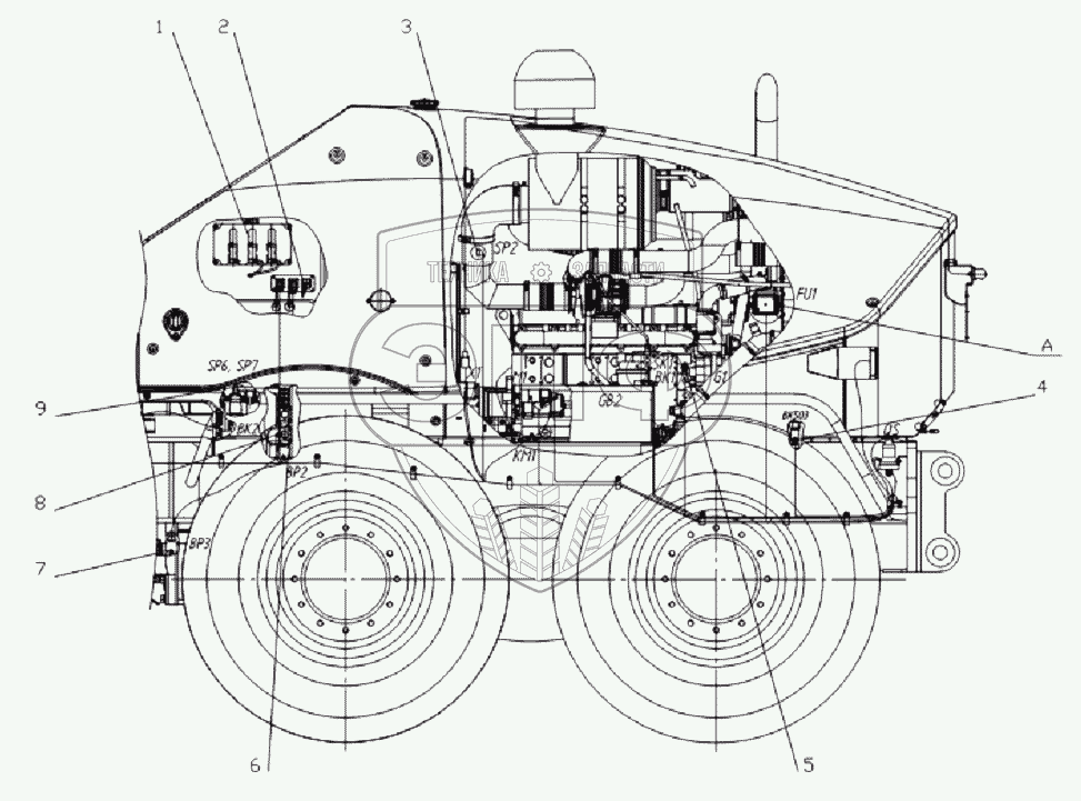 Каталог запасных частей к технике: Брянский Арсенал TG-250 (782-80). Установка датчиков