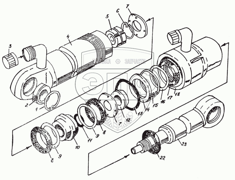 Каталог запасных частей к технике: Булат ЭО-2621B-2. 26.6200.000 ГИДРОЦИЛИНДР РУКОЯТИ